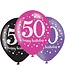 Ballonnen 50 Happy Birthday | 6 stuks | Roze, paars, zwart – Vrolijke verjaardagsballonnen voor 50 jaar, kleurrijk en feestelijk.