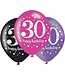 Ballonnen Happy Birthday 30 | 6 stuks | Roze/paars/zwart – Feestballonnen met 30-opdruk in roze, paars en zwart.