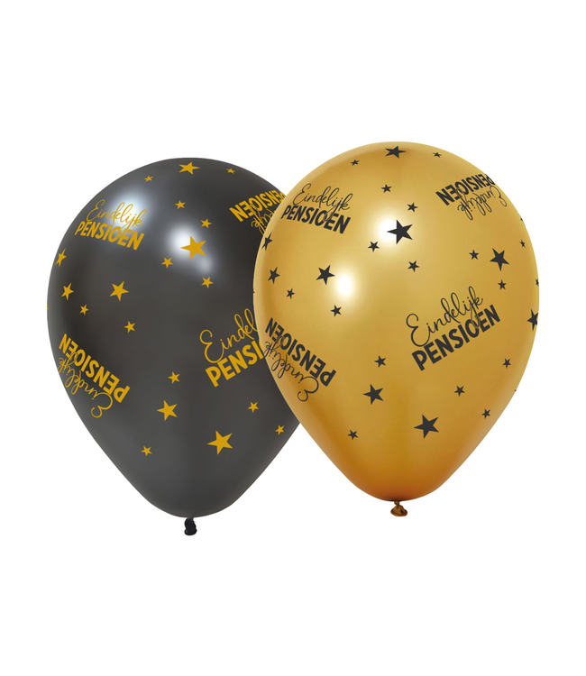 Ballonnen Pensioen | 6 stuks | Golden Celebrations – Ballonnen met ‘Pensioen’ opdruk in goud, ideaal voor feestelijke afscheidsvieringen.