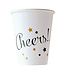 Bekers Cheers | Wit/Zwart/Goud | 8 stuks – Feestelijke bekers in wit, zwart en goud, ideaal voor nieuwjaarsvieringen of borrels.