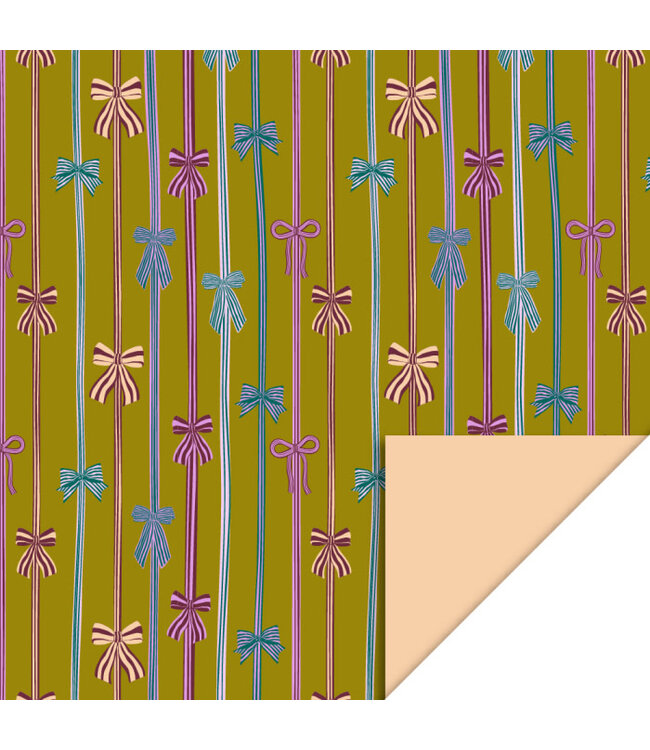 Cadeaupapier Bow Parade Olive - Peach | 70cm x 3m | Dubbelzijdig