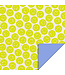 Vrolijk cadeaupapier met een levendig patroon van gele smileys en blauwe tinten, perfect voor vrolijke verpakkingen.