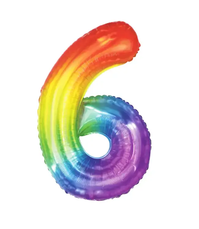 Cijferballon 6 Regenboog | Fleur je feestje op met deze regenboogkleurige cijferballon Ô6Õ. Ideaal voor een kleurrijke en vrolijke viering. | 100cm
