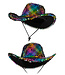 Ik weet niet wie dacht dat een regenboog-paillettenhoed een goed idee was voor een cowboy… maar daar lag ’ie dan, glinsterend alsof ’ie van een dronken eenhoorn was gevallen. Ik zette ’m op voor de grap, en de hele gang lag meteen in een deuk.
