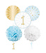Decokit Blauw / Goud | 5 stuks | Waaiers & Fans – Set met 5 blauwe en gouden waaiers, voor feestelijke wanddecoratie.