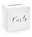 Waar laat je alle enveloppen die je krijgt op je bruiloft of feestje? Met deze mooie, chique witte enveloppendoos met rose gouden tekst geef je je enveloppen een mooie plek! Laat hem nu bezorgen met jullie eigen namen!