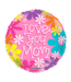 Verras op Moederdag je moeder met deze vrolijke folieballon met gekleurde bloemen. Blaas hem op met lucht of helium. Leuk om aan je Moederdagcadeau te knopen of als heliumballon te geven.
