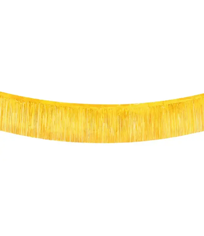 Voeg een luxe touch toe aan je feest met deze gouden franjeslinger. Perfect als backdrop voor een fotomoment, om de desserttafel te versieren of als chique accent bij een gouden themafeest. Laat je feest glanzen met deze stijlvolle decoratie.