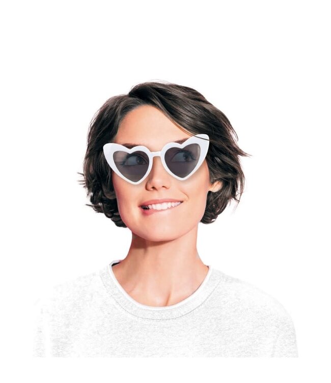 Hartjes bril wit – Witte bril met hartvormige glazen, leuke accessoire voor feest of fotoshoots.