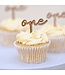 One houten toppers | 6 stuks – Houten taarttoppers met het woord “One”, ideaal voor eerste verjaardagen of cake smash shoots.
