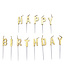 OUTLET Happy birthday kaarsjes goud – Luxe gouden taartkaarsjes met ‘Happy Birthday’-opdruk, perfect voor stijlvolle taarten.