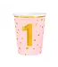 Papieren bekers Roze met sterren 1 jaar | Vrolijke roze papieren bekers met sterren, speciaal voor de eerste verjaardag van je kleintje. Makkelijk en feestelijk! | 6 stuks