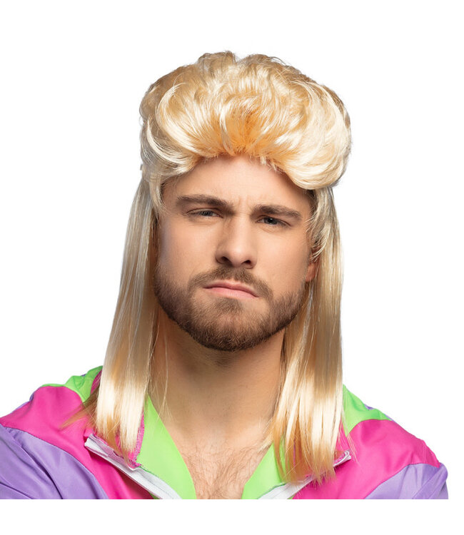 Pruik Larry blond is een vrolijke, volle pruik met een retrolook. Perfect voor discofeesten, thema-avonden of toneelvoorstellingen vol humor en stijl.