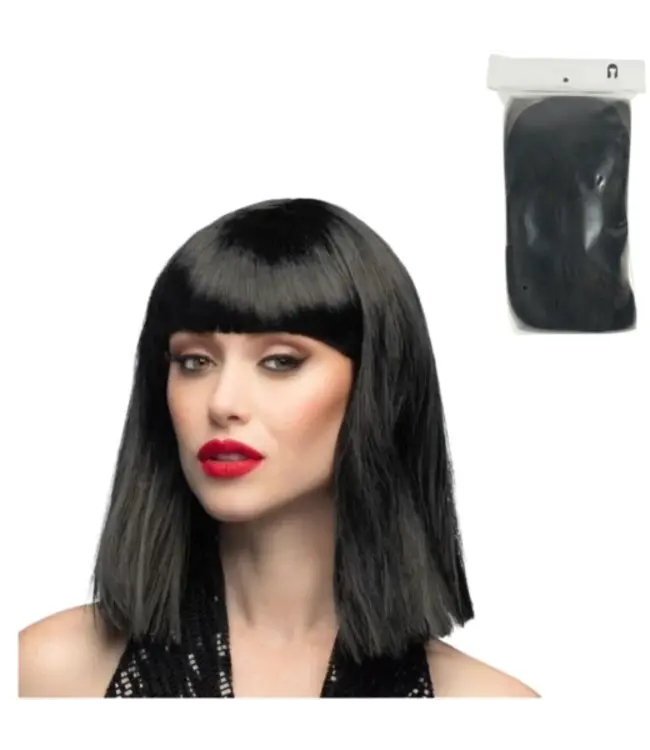 Pruik zwart halflang met pony
