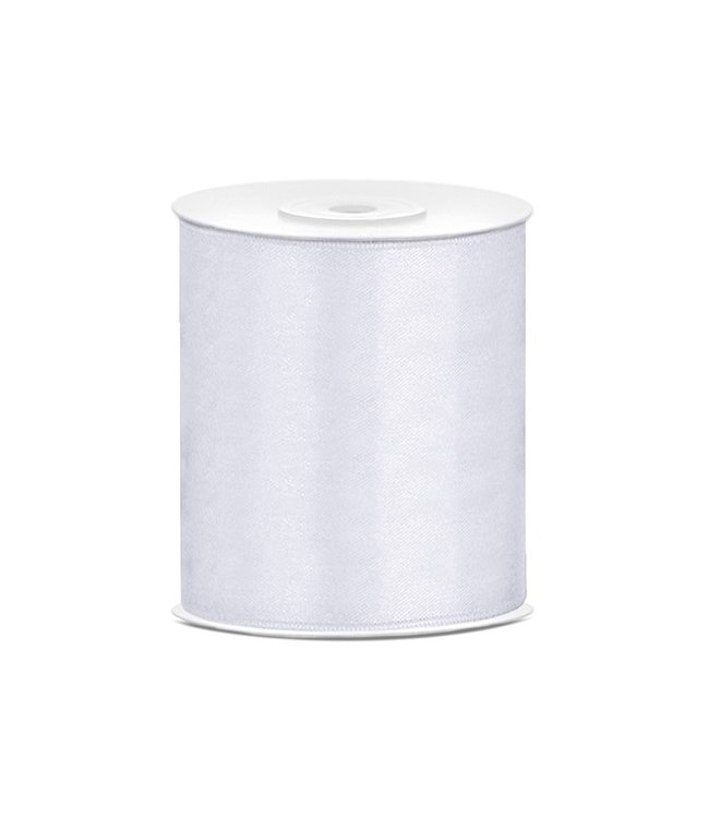 PartyDeco Satijnen lint wit 10 cm | 25 meter lang