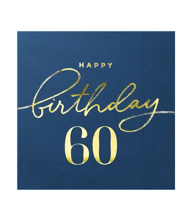 Servetten happy birthday | 60 jaar | Marineblauw en goud | 10 stuks