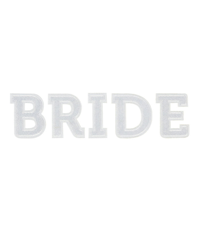 De geweldige strijkapplicatie met de letters BRIDE is te gek om iedereen te laten zien dat je net getrouwd bent, dit natuurlijk samen met je groom of bride.