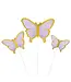Een set van 10 vlindervormige taarttoppers in paars en goud, perfect voor chique en sprookjesachtige decoraties. De luxe kleurencombinatie geeft een elegante uitstraling. Ideaal voor verjaardagen, bruiloften of lente-themafeesten waarbij natuur en glamour