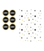 Kleuren: Witte zakjes met zwarte en gouden stippen en zwarte stickers met een gouden rand