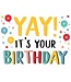 Wenskaart Yay! It's your birthday - Een sprankelende kaart om de verjaardag extra speciaal te maken! Ideaal voor iemand die houdt van een feestelijke verrassing. Lees meer.