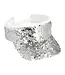 Zonneklep zilver pailletten – Feestelijke zonneklep met zilverkleurige pailletten, ideaal als opvallend accessoire.
